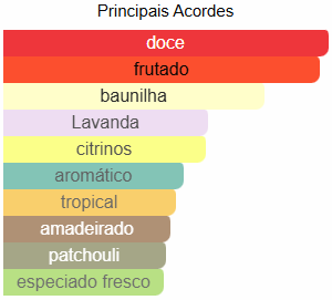 Notas de fundo: Baunilha, Patchouli e Fava Tonka.